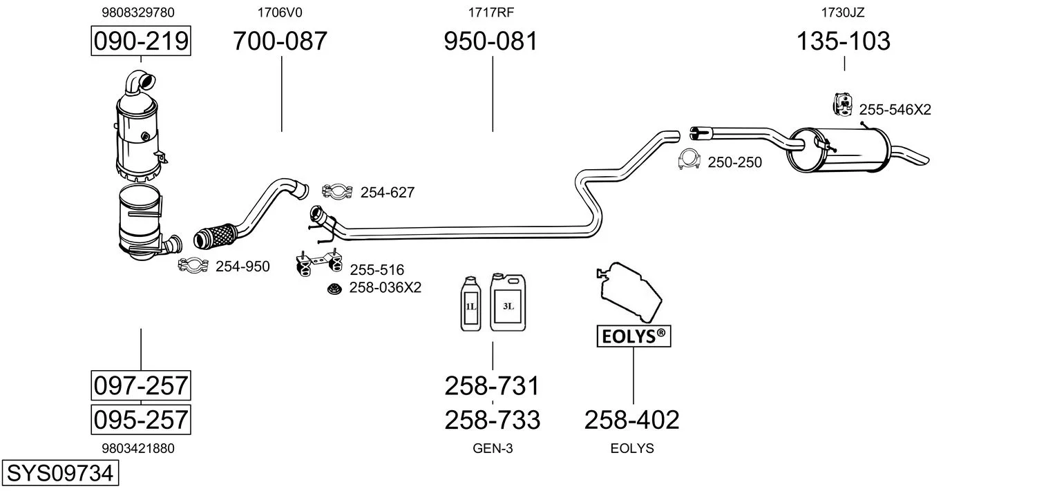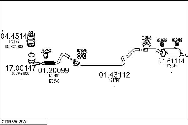 CITROËN BERLINGO Skříňová/velkoprostorová limuzína (B9) 1.6 HDi 90 - Výfukový systém - kompletní od 7/2010, 1560 ccm, 68 kW, 92 hp, 9HJ (DV6DTEDM), 9HP (DV6DTED), Skříňová/velkoprostorová limuzína