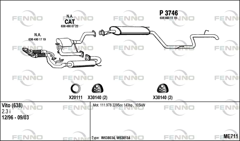 MERCEDES-BENZ VITO Krabice (W638) 114 2.3 (638.034, 638.094) - Výfukový systém - kompletní od 3/1997 do 7/2003, 2295 ccm, 105 kW, 143 hp, M 111.978, M 111.980, Krabice