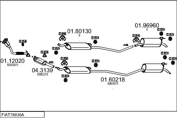 FIAT MULTIPLA (186_) 1.6 16V Blupower (186AMA1A) - Výfukový systém - kompletní od 4/1999 do 6/2010, 1581 ccm, 70 kW, 95 hp, 186 A3.000, velkoprostorová limuzína