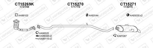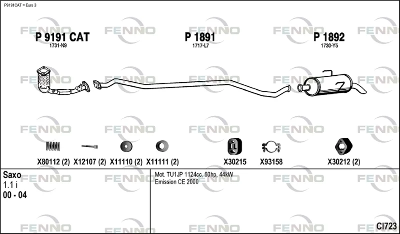 CITROËN SAXO (S0, S1) 1.1 X, SX - Výfukový systém - kompletní od 5/1996 do 9/2003, 1124 ccm, 44 kW, 60 hp, HDZ (TU1M), HFX (TU1JP), Šikmá zadní část