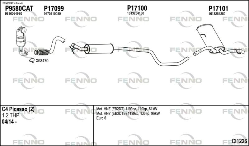 CITROËN C4 PICASSO II 1.2 THP 130 - Výfukový systém - kompletní od 4/2014, 1199 ccm, 96 kW, 130 hp, HNY (EB2DTS), velkoprostorová limuzína