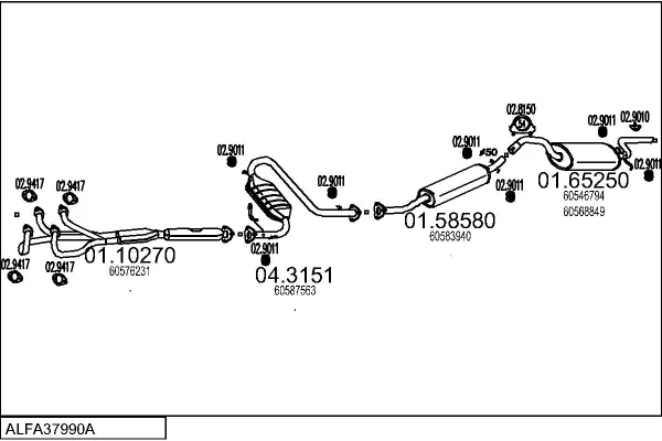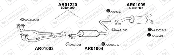 ALFA ROMEO 33 Sportwagon (907_) 1.7 i.e. (907.B1A) - Výfukový systém - kompletní od 4/1992 do 9/1994, 1712 ccm, 77 kW, 105 hp, AR 30737, kombi