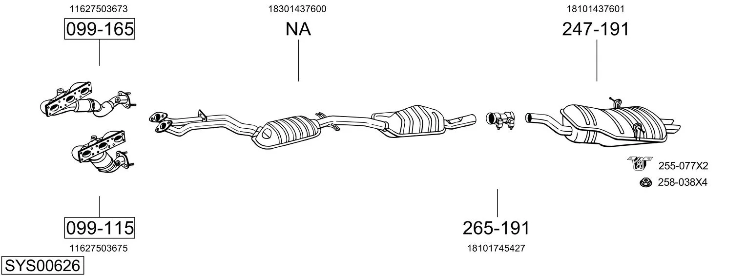 BMW 3 Touring (E46) 320 i - Výfukový systém - kompletní od 10/1999 do 9/2000, 1990 ccm, 110 kW, 150 hp, M52 B20 (206S4), kombi