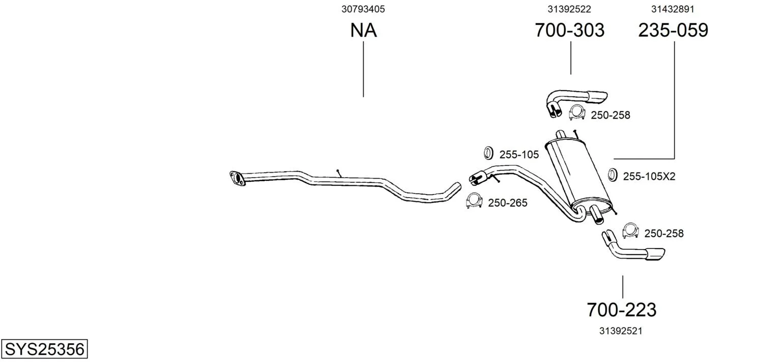 VOLVO XC60 I SUV (156) D4 AWD - Výfukový systém - kompletní od 3/2015 do 2/2017, 2400 ccm, 140 kW, 190 hp, D 5244 T21, SUV