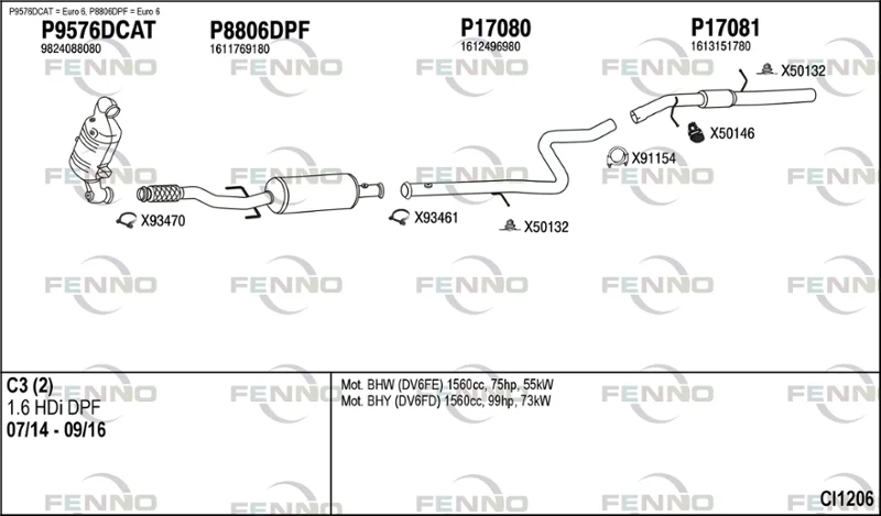 CITROËN C3 II (SC_) 1.6 BlueHDi 75 - Výfukový systém - kompletní od 4/2015 do 9/2016, 1560 ccm, 55 kW, 75 hp, 9HK (DV6ETEDM), BHW (DV6FE), Šikmá zadní část
