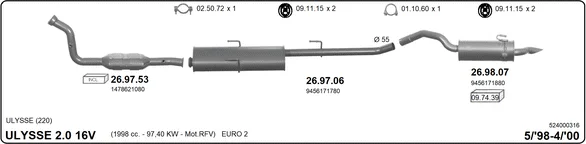 FIAT ULYSSE (220_) 2.0 16V - Výfukový systém - kompletní od 5/1998 do 9/2000, 1998 ccm, 97 kW, 132 hp, RFV, velkoprostorová limuzína