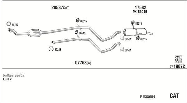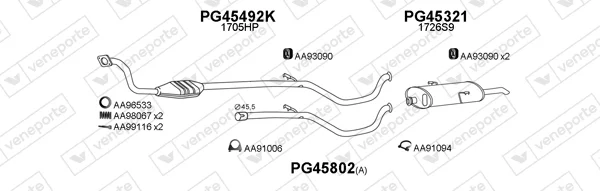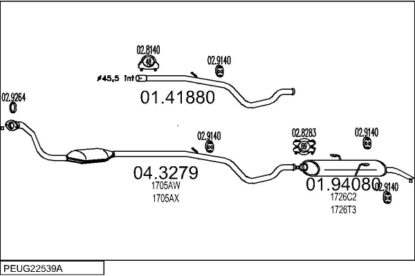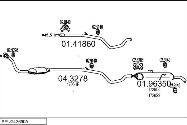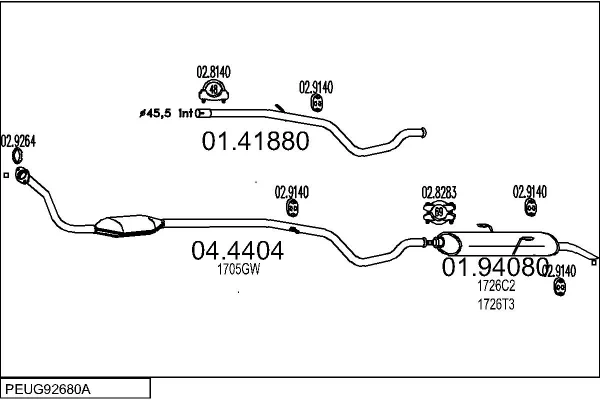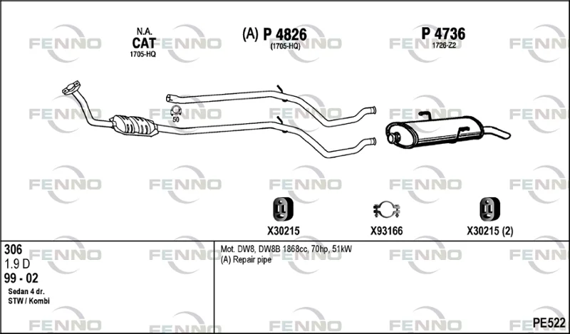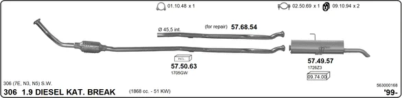 PEUGEOT 306 Break (7E, N3, N5) 1.9 D - Výfukový systém - kompletní od 9/1998 do 4/2002, 1868 ccm, 51 kW, 69 hp, WJY (DW8B), WJZ (DW8), kombi