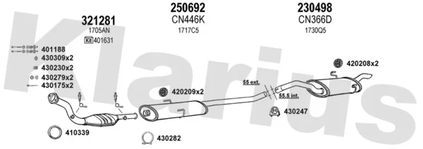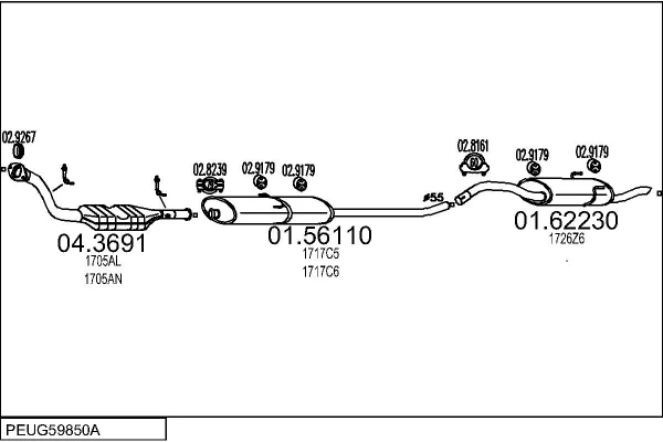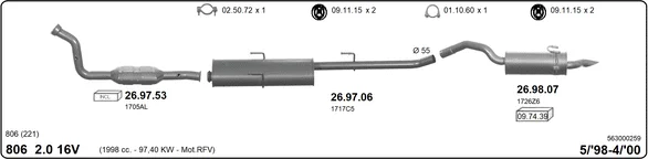 PEUGEOT 806 (221) 2.0 16V - Výfukový systém - kompletní od 5/1998 do 9/2000, 1998 ccm, 97 kW, 132 hp, RFV (XU10J4R), velkoprostorová limuzína
