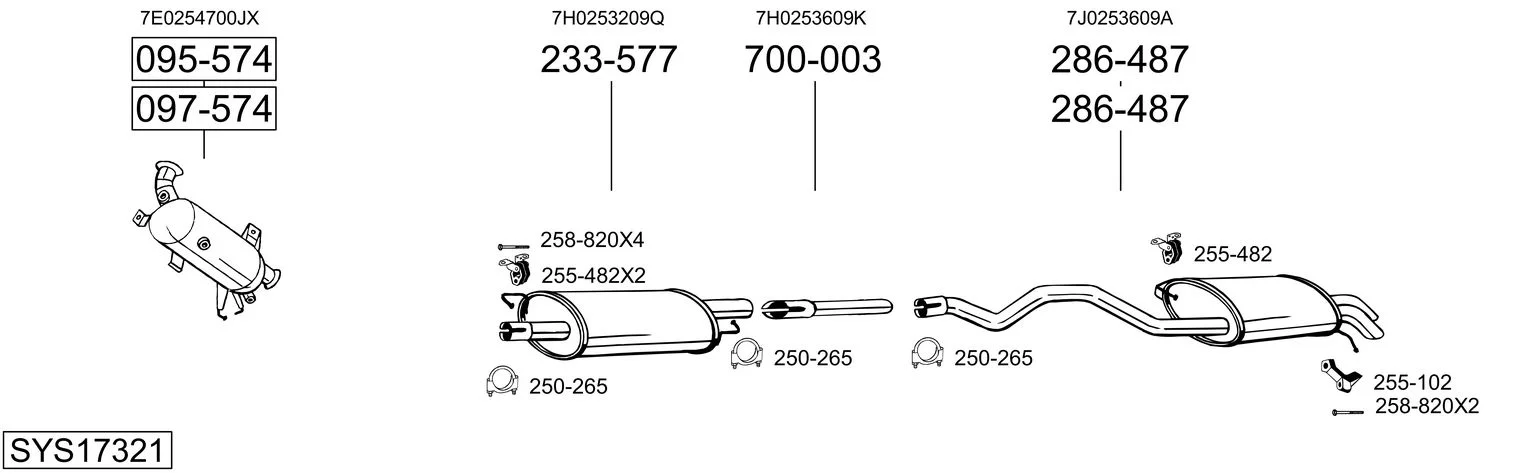 VW TRANSPORTER T6 valník/podvozek (SFD, SFE, SFL, SFZ, SJD, SJE 2.0 TDI - Výfukový systém - kompletní od 4/2015 do 11/2019, 1968 ccm, 132 kW, 180 hp, CFCA, valník/podvozek