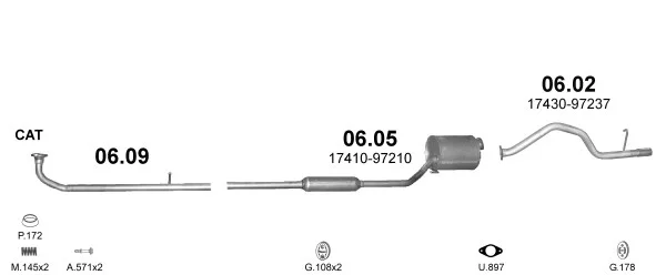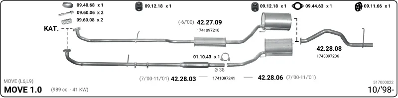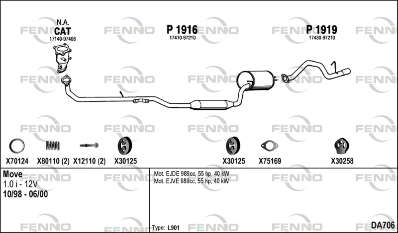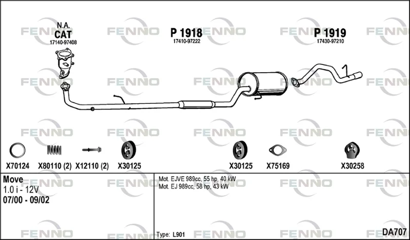DAIHATSU MOVE (L9_) 1.0 i - Výfukový systém - kompletní od 10/1998 do 9/2002, 989 ccm, 41 kW, 55 hp, EJ-DE, velkoprostorová limuzína