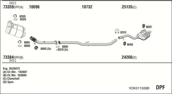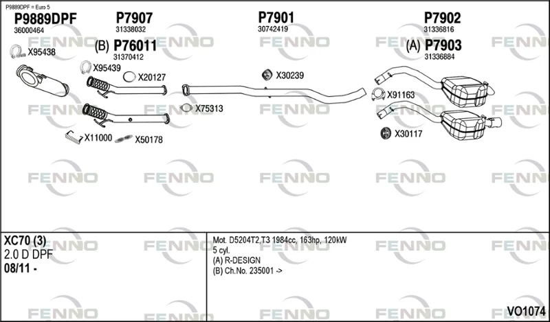 VOLVO XC70 II (136) D3 - Výfukový systém - kompletní od 4/2010 do 12/2015, 1984 ccm, 120 kW, 163 hp, D 5204 T2, D 5204 T3, kombi