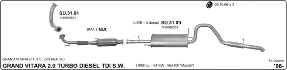 SUZUKI GRAND VITARA I (FT, HT) 2.0 TD 4x4 (SQ420D) - Výfukový systém - kompletní od 3/1998 do 7/2003, 1998 ccm, 64 kW, 87 hp, RF, uzavřený terénní vůz