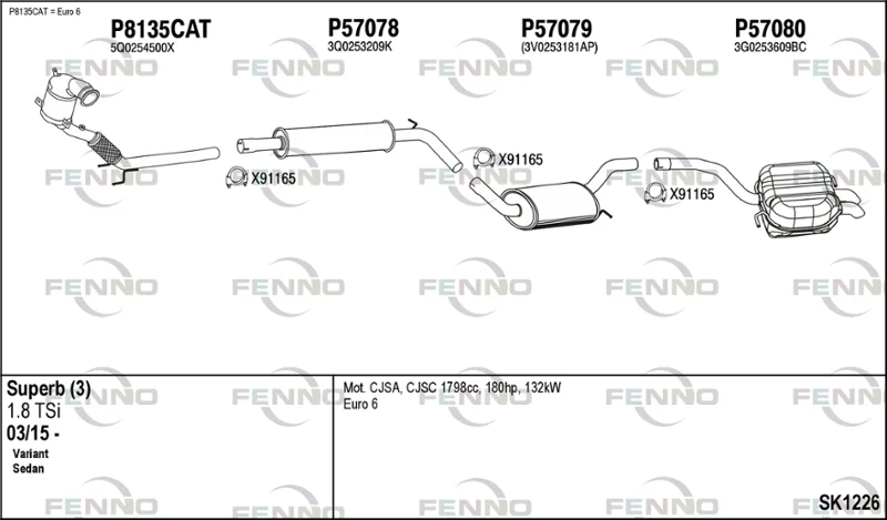 SKODA SUPERB III (3V3) 1.8 TSI - Výfukový systém - kompletní od 3/2015, 1798 ccm, 132 kW, 180 hp, CJSA, CJSC, Šikmá zadní část