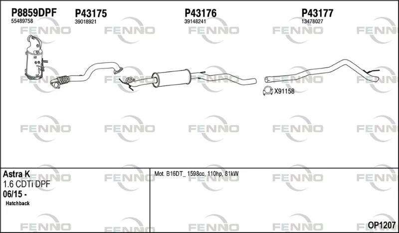 OPEL ASTRA K (B16) 1.6 CDTi (68) - Výfukový systém - kompletní od 6/2015 do 12/2022, 1598 ccm, 70 kW, 95 hp, B 16 DTE, Šikmá zadní část