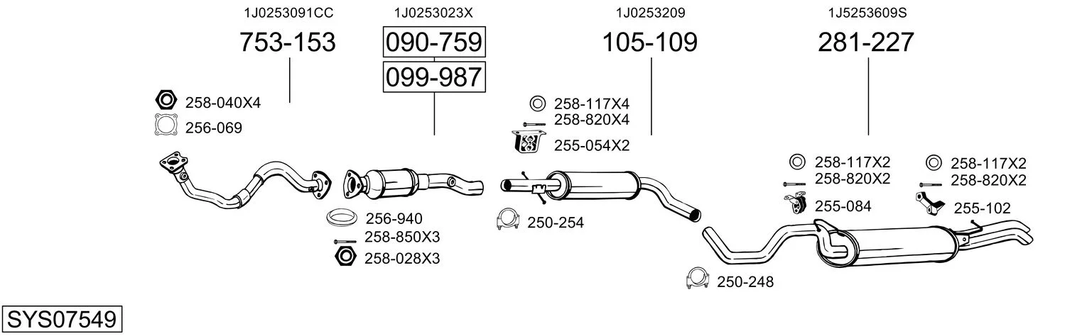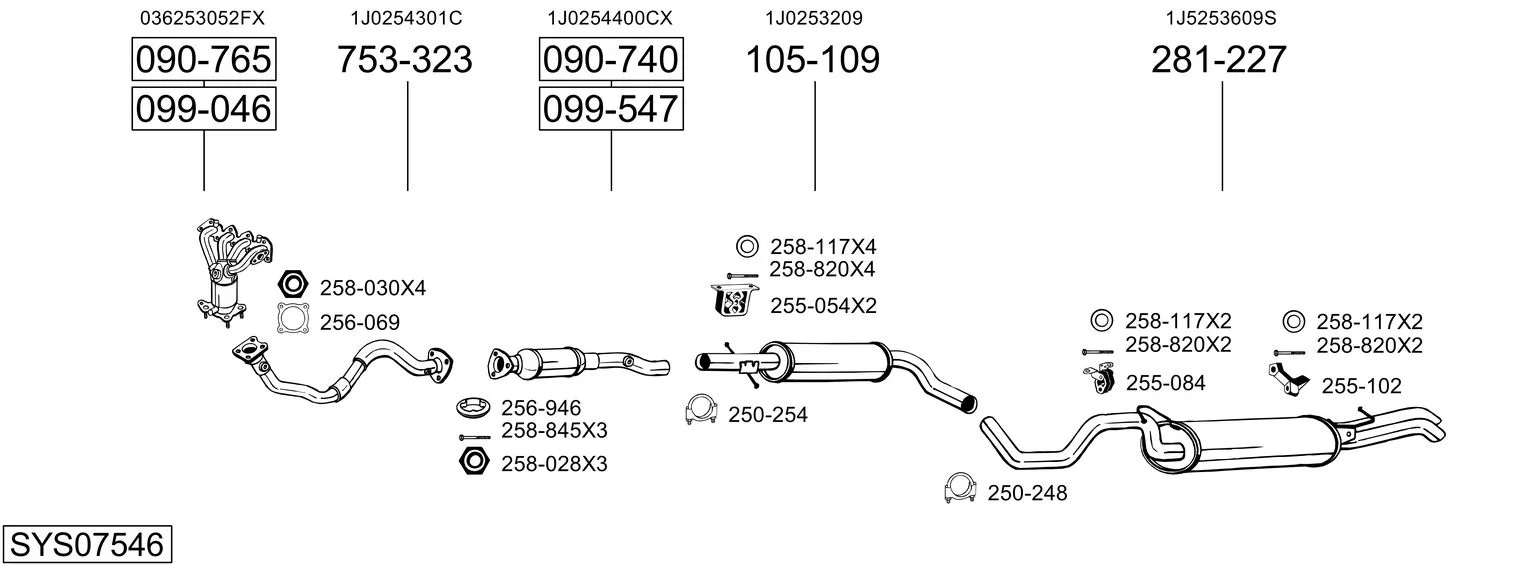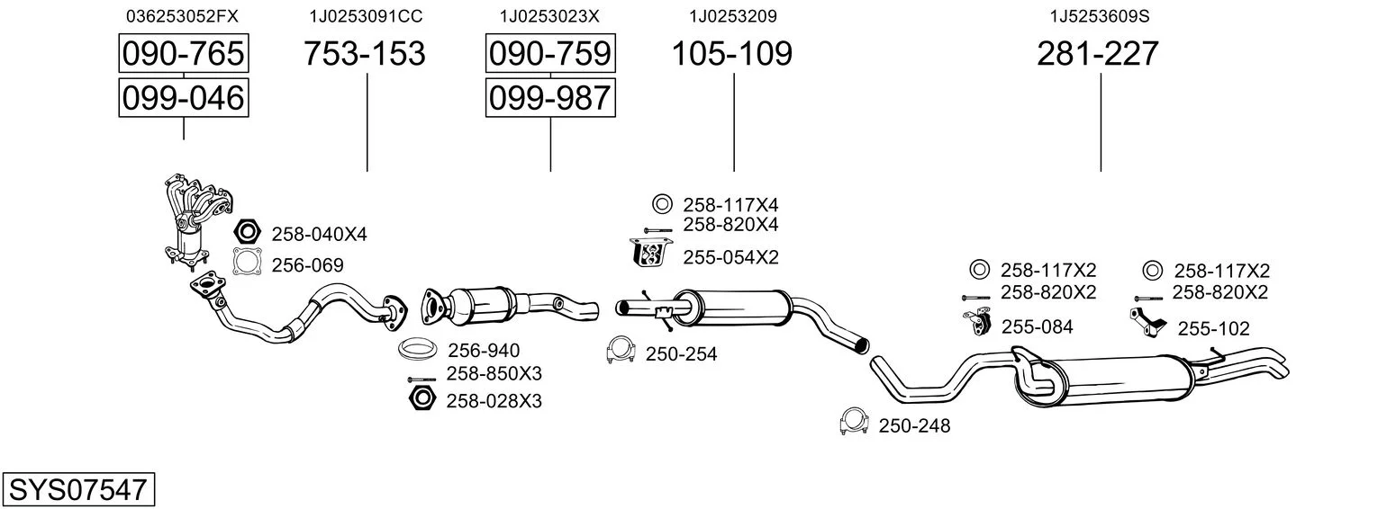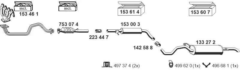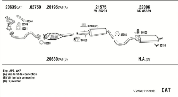 VW GOLF IV Variant (1J5) 1.4 16V - Výfukový systém - kompletní od 5/1999 do 6/2006, 1390 ccm, 55 kW, 75 hp, AHW, AKQ, APE, AXP, BCA, kombi
