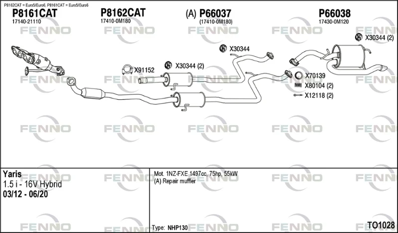 TOYOTA YARIS (_P13_) 1.5 Hybrid (NHP130_) - Výfukový systém - kompletní od 4/2015 do 3/2017, 1497 ccm, 74 kW, 101 hp, 1NZ-FXE, Šikmá zadní část