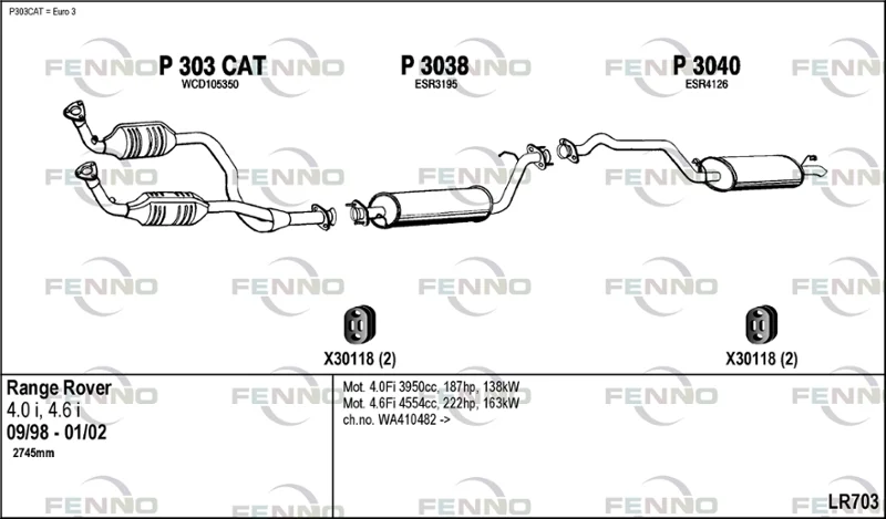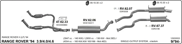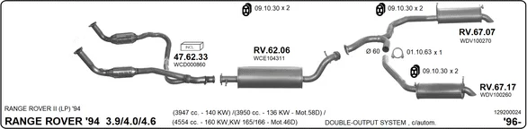 LAND ROVER RANGE ROVER II (P38A) 4.0 4x4 - Výfukový systém - kompletní od 1/1995 do 3/2002, 3947 ccm, 136 kW, 185 hp, 42 D, uzavřený terénní vůz