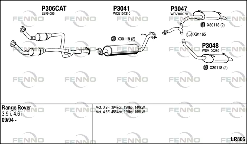 LAND ROVER RANGE ROVER II (P38A) 4.6 4x4 - Výfukový systém - kompletní od 6/1998 do 3/2002, 4554 ccm, 160 kW, 218 hp, 60 D, uzavřený terénní vůz