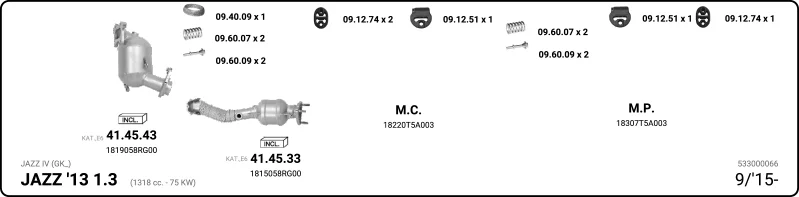 HONDA JAZZ IV (GK_) 1.3 - Výfukový systém - kompletní od 9/2015, 1318 ccm, 75 kW, 102 hp, L13B, L13B2, Šikmá zadní část