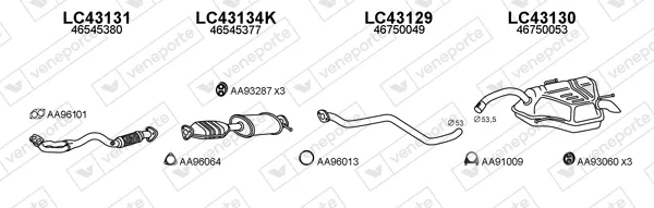 LANCIA LYBRA SW (839_) 1.8 16V (839BXB1A, 839BXG1A) - Výfukový systém - kompletní od 7/1999 do 10/2005, 1747 ccm, 96 kW, 131 hp, 839 A4.000, 839 A7.000, kombi