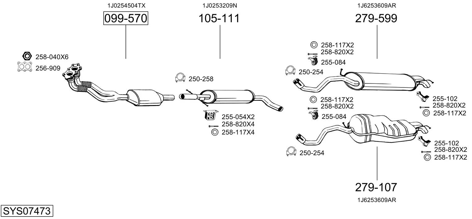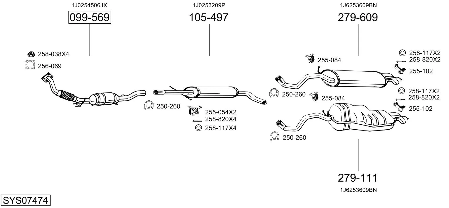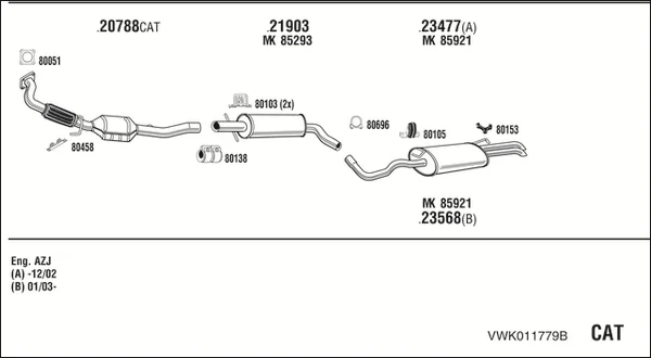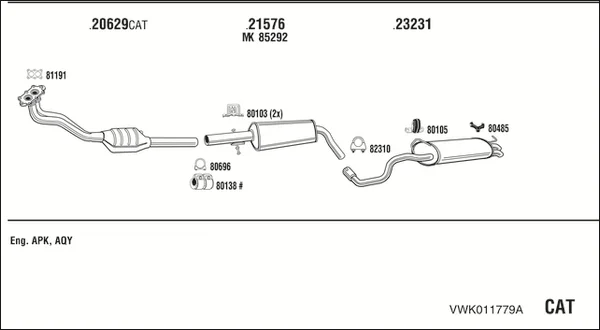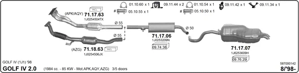VW GOLF IV (1J1) 2.0 - Výfukový systém - kompletní od 7/1998 do 5/2004, 1984 ccm, 85 kW, 115 hp, AEG, APK, AQY, AVH, AZG, AZJ, BEJ, BER, BEV, BHP, Šikmá zadní část