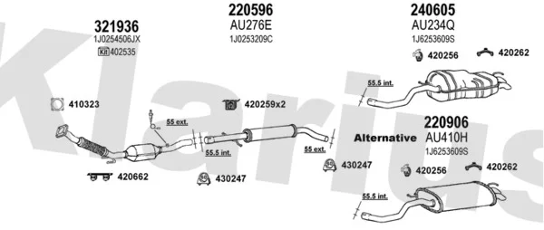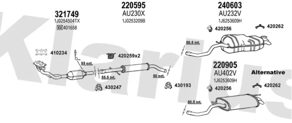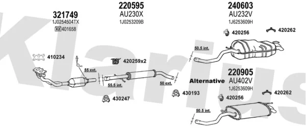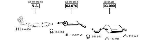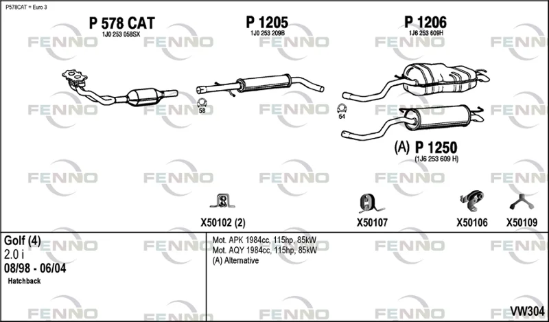 VW GOLF IV (1J1) 2.0 - Výfukový systém - kompletní od 7/1998 do 5/2004, 1984 ccm, 85 kW, 115 hp, AEG, APK, AQY, AVH, AZG, AZJ, BEJ, BER, BEV, BHP, Šikmá zadní část