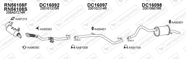 DACIA LODGY (JS_) 1.5 dCi - Výfukový systém - kompletní od 6/2015, 1461 ccm, 80 kW, 109 hp, K9K 666, K9K 846, velkoprostorová limuzína