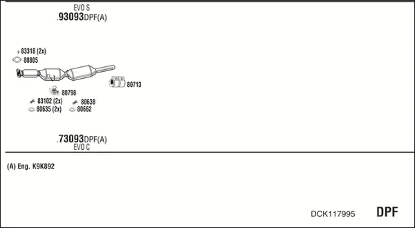 DACIA DUSTER Skříň/SUV 1.5 dCi - Výfukový systém - kompletní od 4/2011, 1461 ccm, 66 kW, 90 hp, K9K 884, K9K 892, Skříň/SUV