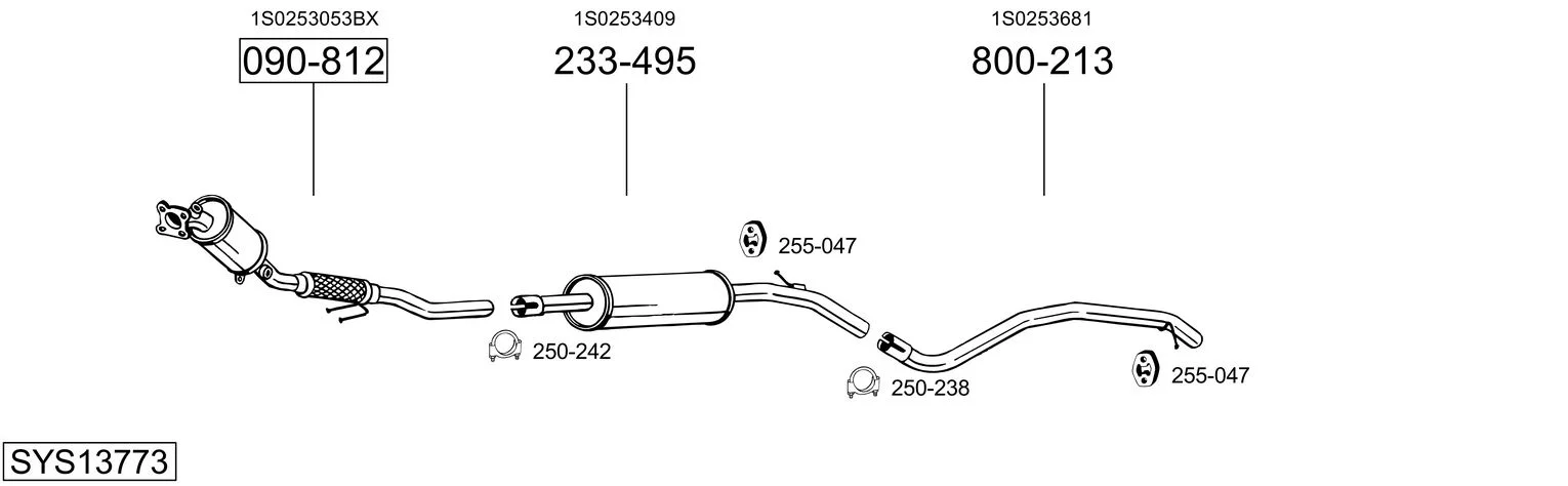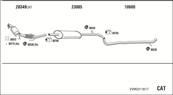 VW UP! (121, 122, BL1, BL2, BL3, 123) 1.0 - Výfukový systém - kompletní od 8/2011 do 11/2019, 999 ccm, 55 kW, 75 hp, CHYB, CWRA, Šikmá zadní část