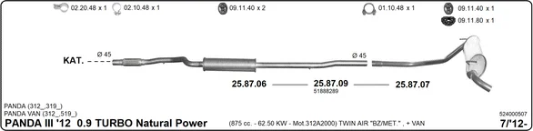 FIAT PANDA VAN (312_, 519_) 0.9 Natural Power (312DXG1A) - Výfukový systém - kompletní od 7/2012, 875 ccm, 63 kW, 86 hp, 312 A2.000, Schránky/šikmá záď