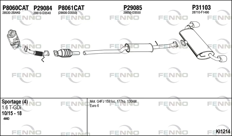 KIA SPORTAGE IV (QL, QLE) 1.6 T-GDI AWD - Výfukový systém - kompletní od 9/2015 do 9/2022, 1591 ccm, 130 kW, 177 hp, G4FJ, SUV