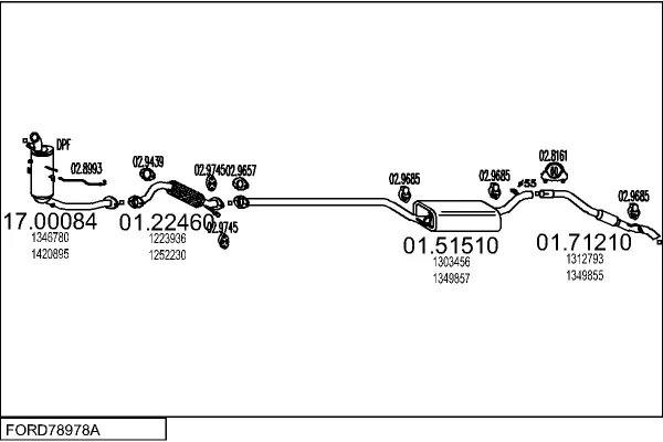 FORD C-MAX (DM2) 1.6 TDCi - Výfukový systém - kompletní od 2/2007 do 9/2010, 1560 ccm, 74 kW, 101 hp, G8DC, MTDA, velkoprostorová limuzína