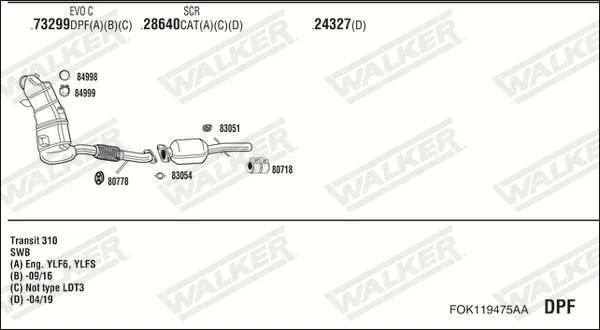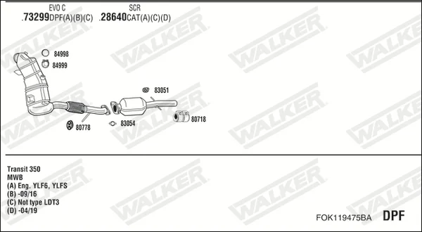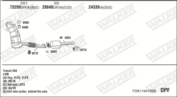 FORD TRANSIT V363 valník/podvozek (FED, FFD) 2.0 EcoBlue - Výfukový systém - kompletní od 3/2016, 1995 ccm, 77 kW, 105 hp, BJFA, BJFB, YLF6, YLFA, YLFB, YLFS, valník/podvozek