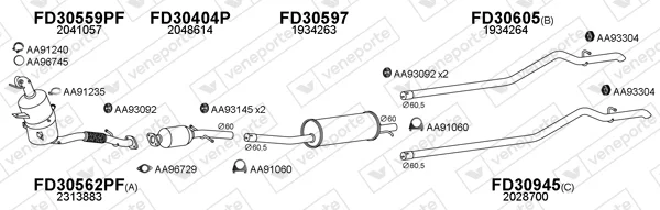 FORD TRANSIT V363 valník/podvozek (FED, FFD) 2.0 EcoBlue RWD - Výfukový systém - kompletní od 3/2016, 1995 ccm, 77 kW, 105 hp, BJRA, YLR6, YLRA, valník/podvozek