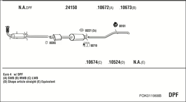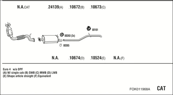 FORD TRANSIT valník/podvozek (FM_ _, FN_ _, FF_ _) 2.2 TDCi - Výfukový systém - kompletní od 10/2011 do 8/2014, 2198 ccm, 92 kW, 125 hp, CYFA, CYFB, CYFC, CYFD, valník/podvozek