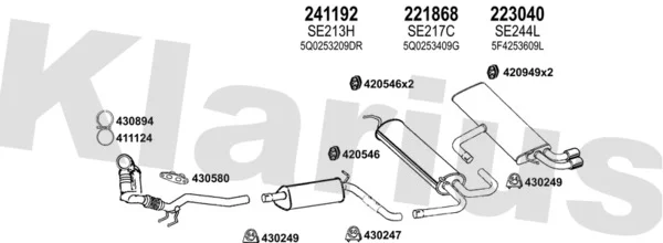 SEAT ATECA (KH7, KHP) 1.4 TSI - Výfukový systém - kompletní od 6/2016, 1395 ccm, 110 kW, 150 hp, CZEA, DJKA, SUV