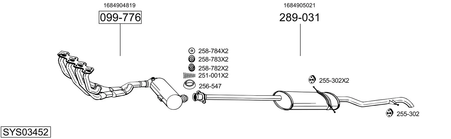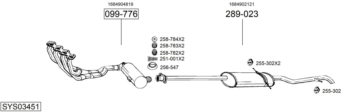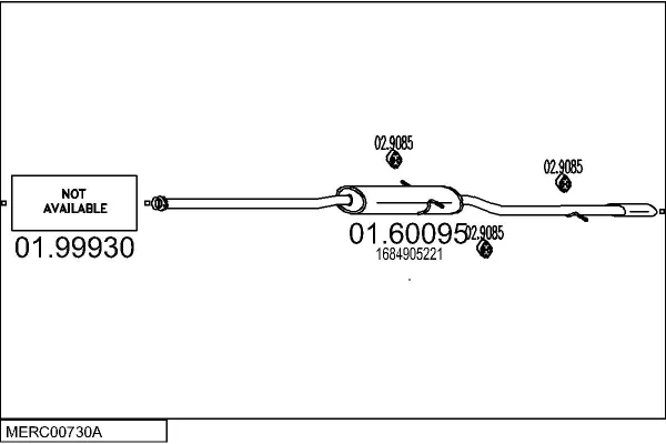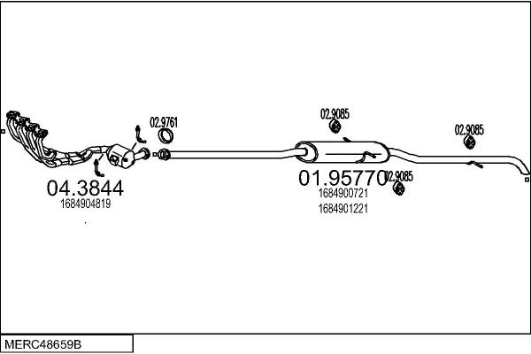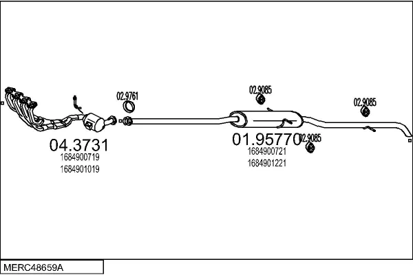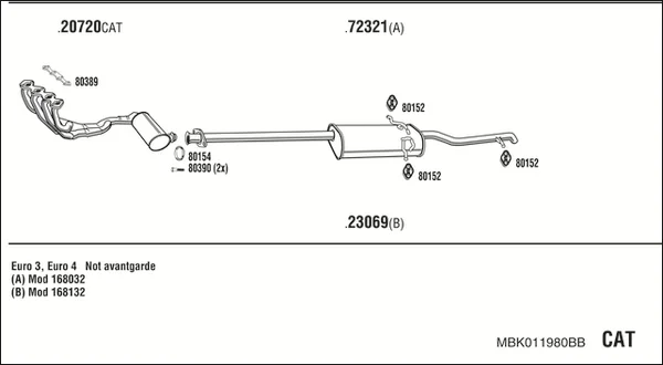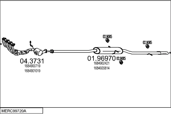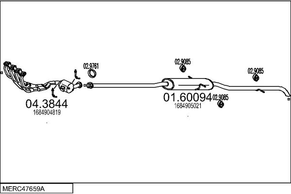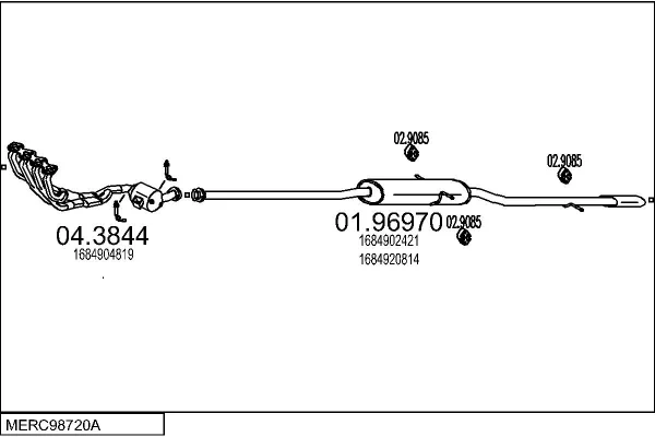 MERCEDES-BENZ A-CLASS (W168) A 190 (168.032, 168.132) - Výfukový systém - kompletní od 3/1999 do 8/2004, 1898 ccm, 92 kW, 125 hp, M 166.990, Šikmá zadní část