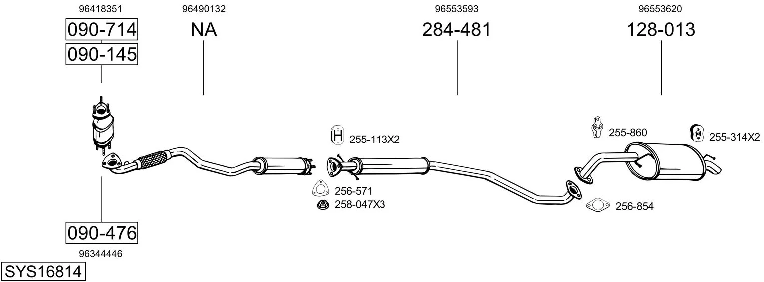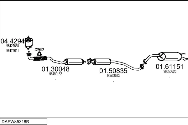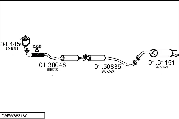 DAEWOO LACETTI Šikmá zadní část (KLAN) 1.4 - Výfukový systém - kompletní od 6/2002 do 12/2004, 1399 ccm, 69 kW, 94 hp, F14D3, Šikmá zadní část