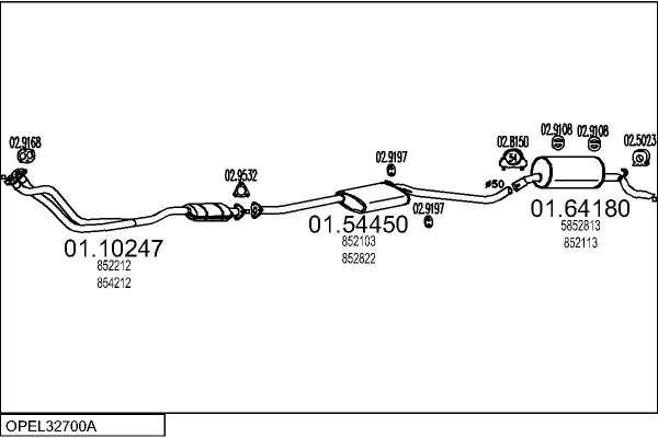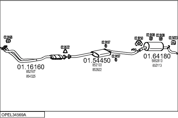OPEL OMEGA A (V87) 2.0 (F19, M19, N19) - Výfukový systém - kompletní od 9/1986 do 3/1994, 1998 ccm, 90 kW, 122 hp, 20 SE, limuzína