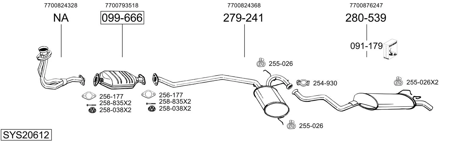 RENAULT 19 I Cabriolet (D53_) 1.7 - Výfukový systém - kompletní od 7/1991 do 4/1992, 1721 ccm, 55 kW, 75 hp, F2N 724, Kabriolet