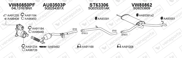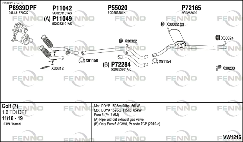 VW GOLF VII Variant (BA5, BV5) 1.6 TDI - Výfukový systém - kompletní od 11/2016 do 8/2020, 1598 ccm, 85 kW, 115 hp, DDYA, DGTE, kombi