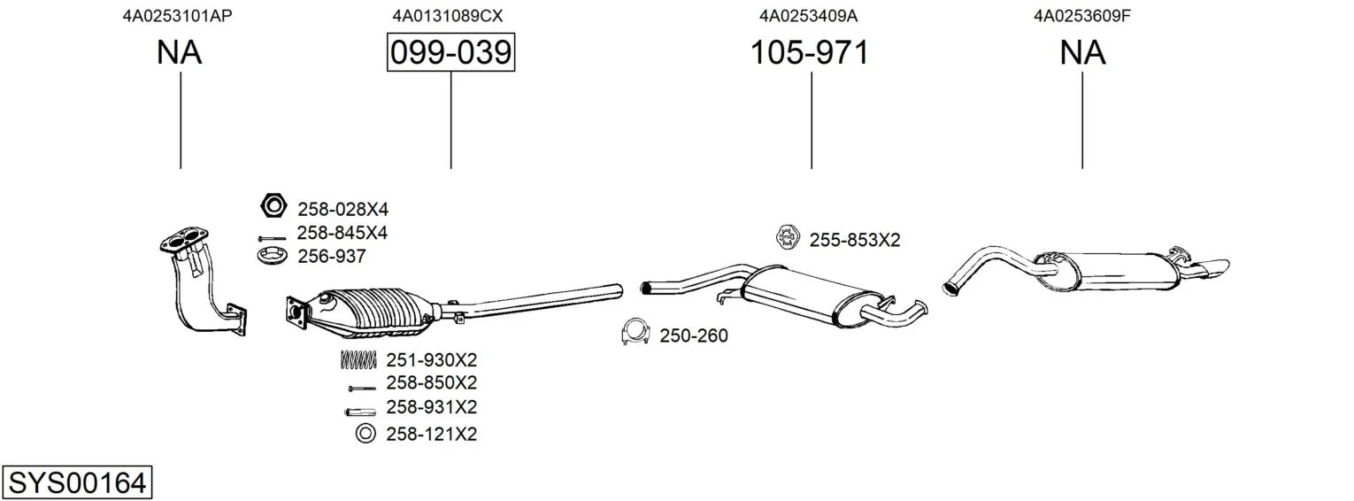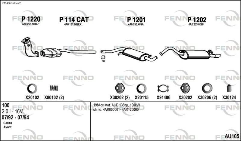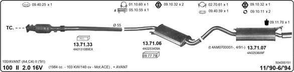 AUDI 100 C4 limuzína (4A2) 2.0 E 16V - Výfukový systém - kompletní od 1/1992 do 7/1994, 1984 ccm, 103 kW, 140 hp, ACE, limuzína