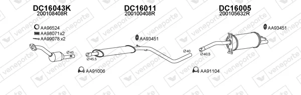 DACIA SANDERO 1.6 16V Bifuel - Výfukový systém - kompletní od 1/2011, 1598 ccm, 77 kW, 105 hp, K4M 690, K4M 694, K4M 696, Šikmá zadní část