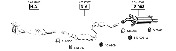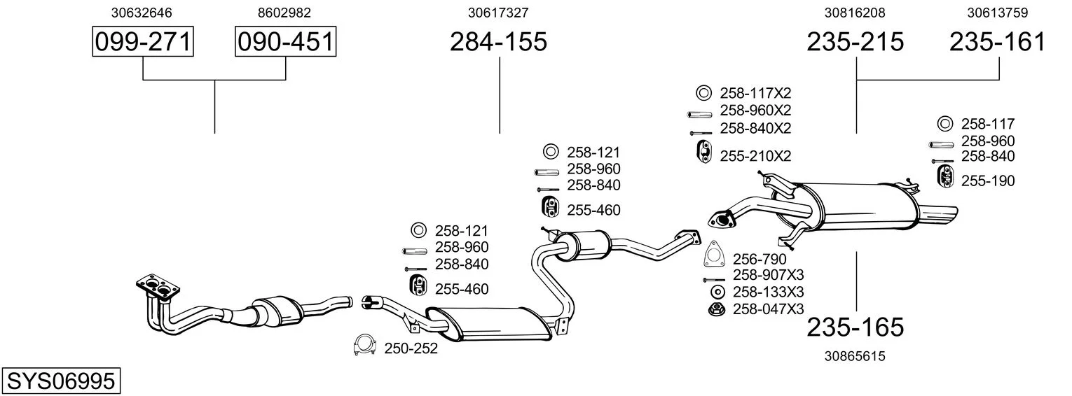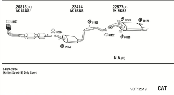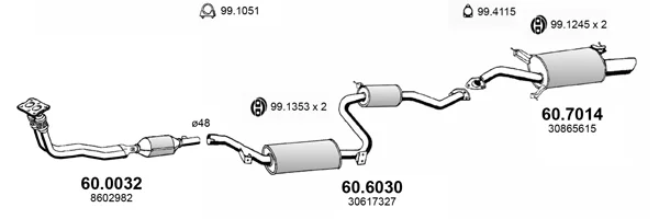 VOLVO S40 I (644) 1.6 - Výfukový systém - kompletní od 3/1999 do 12/2003, 1587 ccm, 80 kW, 109 hp, B 4164 S2, limuzína