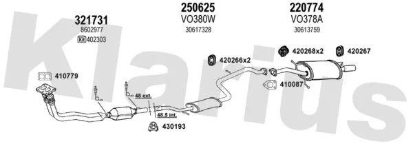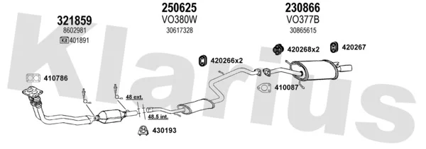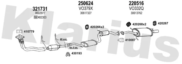 VOLVO S40 I (644) 1.6 - Výfukový systém - kompletní od 3/1999 do 12/2003, 1587 ccm, 80 kW, 109 hp, B 4164 S2, limuzína