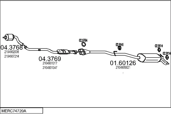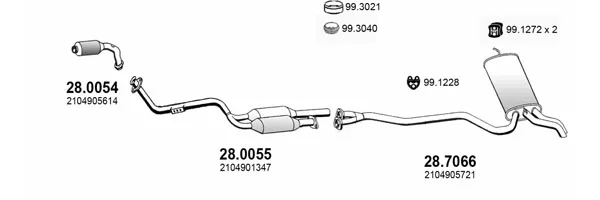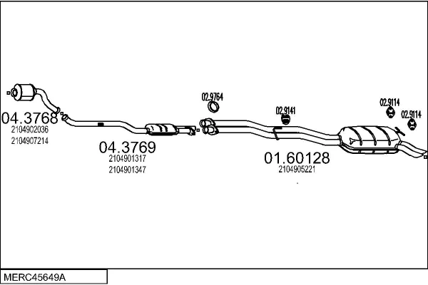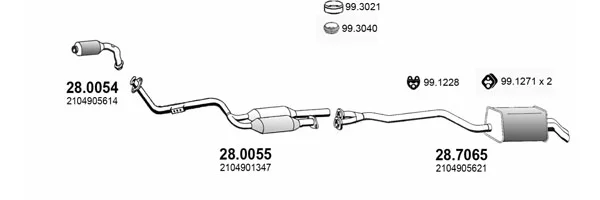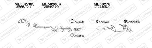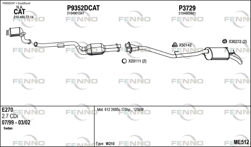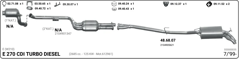 MERCEDES-BENZ E-CLASS (W210) E 270 CDI (210.016) - Výfukový systém - kompletní od 7/1999 do 3/2002, 2685 ccm, 125 kW, 170 hp, OM 612.961, limuzína