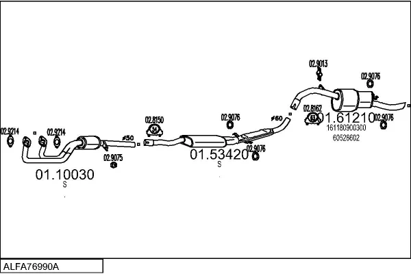 ALFA ROMEO 75 (162_) 2.0 T.S. (162.4CB, 162.B4, 162.B4A) - Výfukový systém - kompletní od 1/1987 do 2/1992, 1962 ccm, 107 kW, 146 hp, AR 06166, AR 06224, limuzína