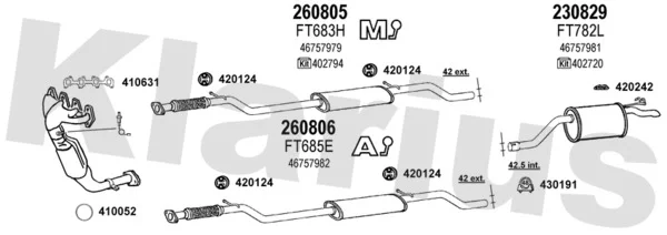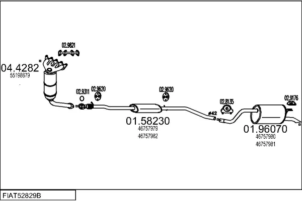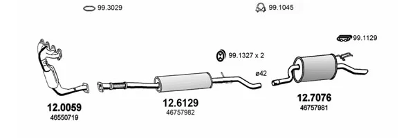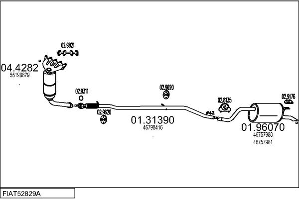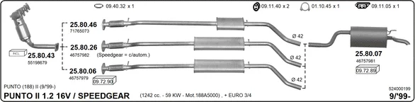 FIAT PUNTO (188_) 1.2 16V 80 (188.233, .235, .253, .255, .333, .353, .639,... - Výfukový systém - kompletní od 9/1999 do 4/2006, 1242 ccm, 59 kW, 80 hp, 188 A5.000, Šikmá zadní část