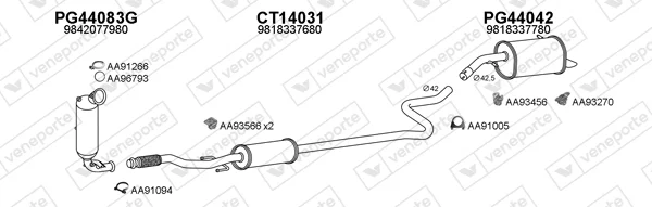CITROËN C3 AIRCROSS II (2R_, 2C_) 1.2 PureTech 130 (2RHNYH) - Výfukový systém - kompletní od 7/2017, 1199 ccm, 96 kW, 131 hp, HNS (EB2ADTS), HNY (EB2DTS), SUV