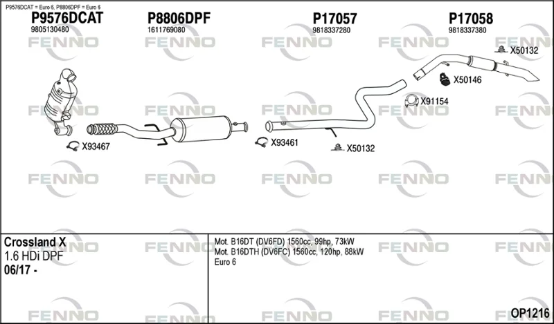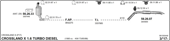 OPEL CROSSLAND X / CROSSLAND (P17, P2QO) 1.6 Turbo D (75) - Výfukový systém - kompletní od 8/2017 do 4/2019, 1560 ccm, 85 kW, 116 hp, B 16 DTH (DV6FC), SUV